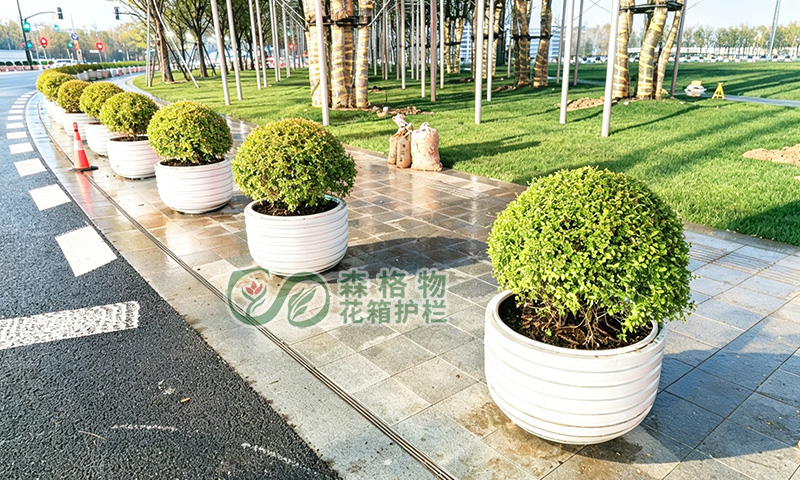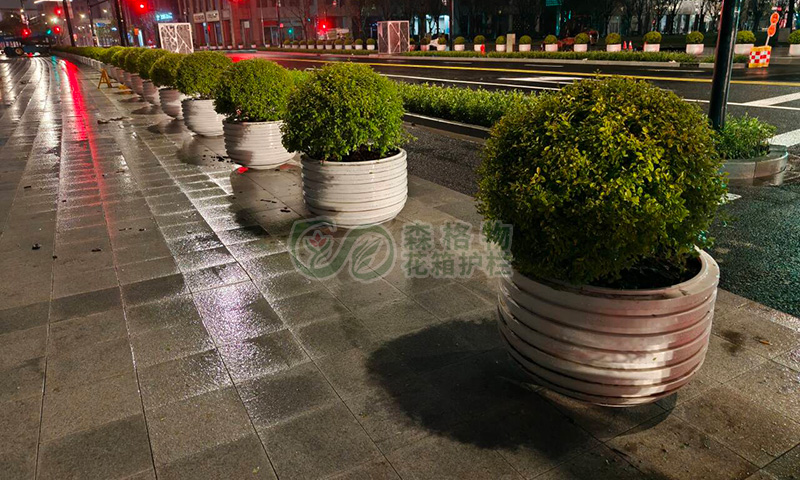 本次项目位于上海浦东区城市主干道沿线,该路段为区域重要交通动线,原有道路绿化设施存在景观单调、功能单一的问题,无法匹配周边城市界面的整体提升需求。项目以 “优化道路绿化层次、提升公共空间品质” 为目标,选取适配市政场景的不锈钢圆形树池花钵,打造整洁有序、长效耐用的道路绿化景观。