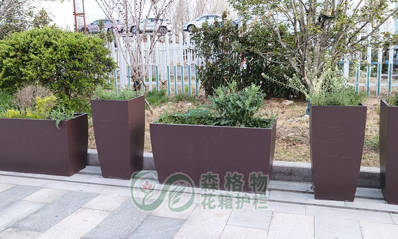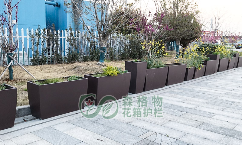 花箱表面采用环保氟碳喷涂工艺,选用哑光咖啡色等适配户外景观的色调,质感高级、颜色均匀,无有害气体释放,符合市政环保标准。喷涂层致密均匀,抗紫外线、抗老化能力强,可长期保持外观整洁,与各类绿植搭配适配度极高,既能融入现代简约、中式、新中式等不同设计风格的服务区,又能为服务区注入自然生机,提升整体景观精致感,改善司乘人员出行体验。