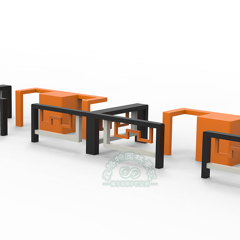 M 型基础款:采用中式回纹镂空设计,线条简洁利落,兼具通透感与视觉辨识度,底部加宽立柱与地面锚固,保障基础隔离与防撞能力。