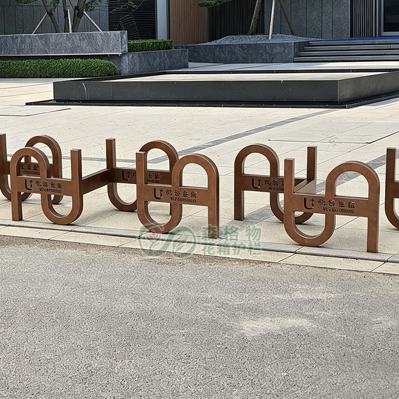 产品支持个性化定制,可根据项目需求调整表面颜色,如图中红色系款式,视觉醒目,同时可在主体区域雕刻项目名称、品牌标识等文字信息,既提升设施辨识度,又能契合商业街区、市政项目的整体风格。每个卡位预留标准尺寸,适配常规非机动车、小型车辆的限位需求,结构上预留安装位,兼顾实用性与安装便捷性。